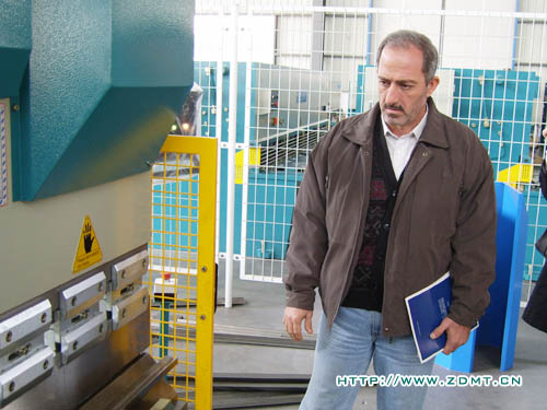 Haiyl A.AI Rawy先生對中國機械行業尤其是剪板機折彎機非常的熟悉,他表示他們非常重視機器的質量,來中德也是由于中德機器在海內外都享有良好的聲譽。參觀前,Haiyl A.AI Rawy還特意詢問我們在阿聯酋有沒有代理,當公司領導回答說目前還沒有時,他釋然一笑,表示希望能夠與中德建立良好的合作關系。在中德的成品車間,Haiyl A.AI Rawy先生聽取了我公司營狀況及近遠期規劃的介紹,并就每一款機床的詳細情況進行了介紹,重點詢問了其性能及售價等。他對我們的數控折彎機尤其感興趣,要求當場進行測試。Haiyl A.AI Rawy特意讓自己的助理拍下了整個操作過程,在我公司工程師的幫助下,Haiyl A.AI Rawy還進一步了解了折彎機數控系統的編程方面的問題。
