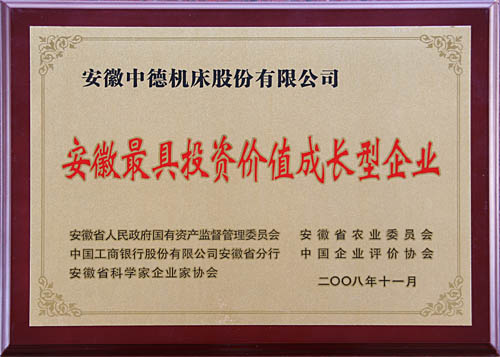 12月6日,省國資委、省農(nóng)委、省工行、中國企業(yè)評價協(xié)會、省科學(xué)家企業(yè)家協(xié)會聯(lián)合在合肥發(fā)布了“2008安徽最具投資價值成長型企業(yè)百強榜”,中德榜上有名。